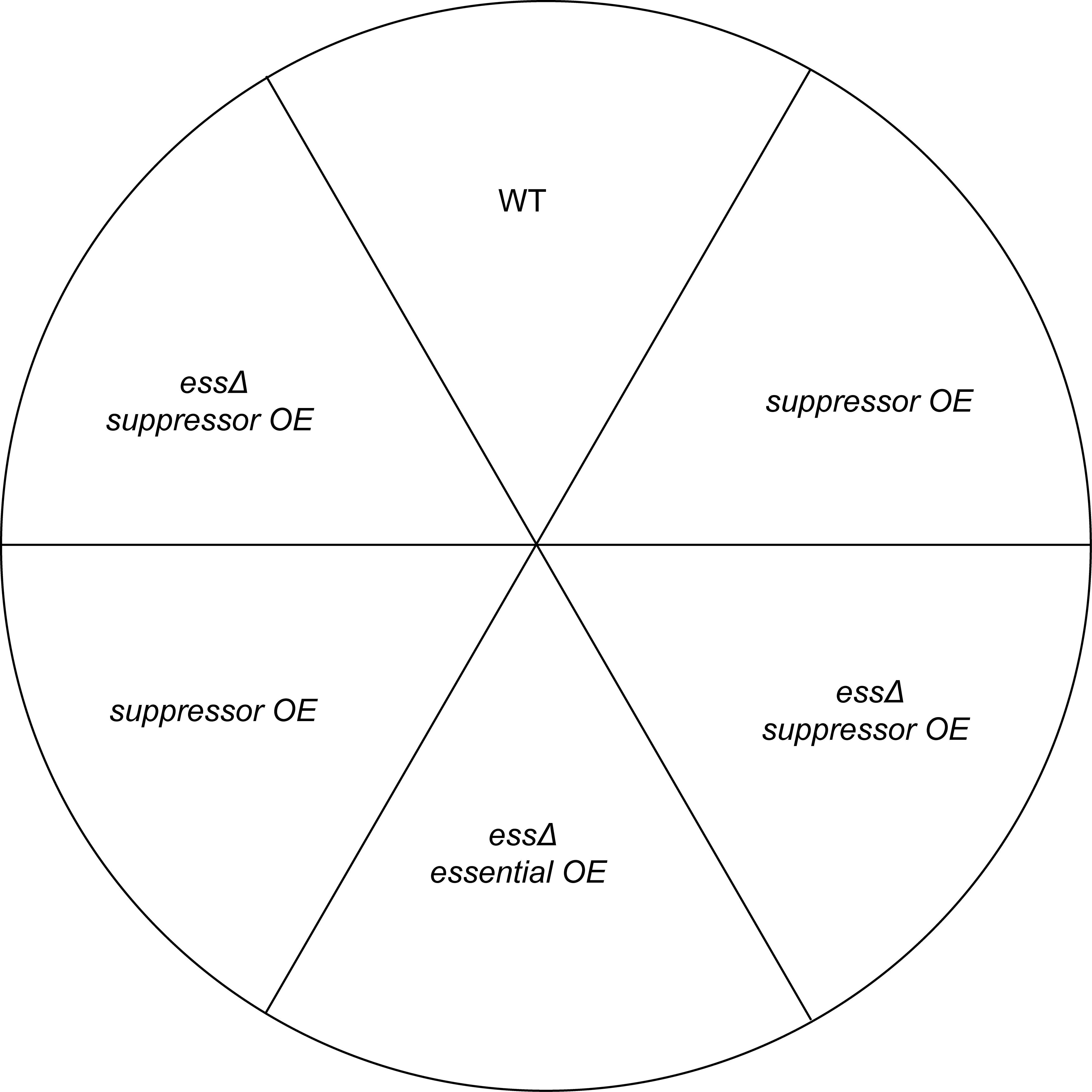 H: Control | Selection for essential gene deletion and the OE plasmid, and counter-selection against the rescuing plasmid (suppressor overexpression OFF)